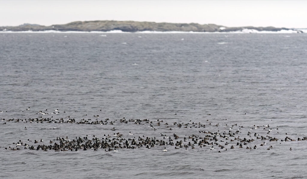 Lauantaina 28.2.2026 oli pilvistä ja iltapäivällä sumuistakin, lämpöä 1-2 astetta ja heikkoa (alle 4 m/s) länsituulta. Lunta on enää niukasti. Yhtenäinen avovesi alkaa eteläpuolella n. 3 km päässä, mutta pienempiä sulavesiä on siellä täällä. Staijia vajaa pari tuntia ja saari kierrettiin, komppaajiahan on nyt useita. Merellä nähtiin mm. 8 laulujoutsenta, 697 allia, 94 mustalintua, 3 pilkkasiipeä, 3 uiveloa, 2 tukkakoskeloa, 4 lapasotkaa ja 3 merisirriä.