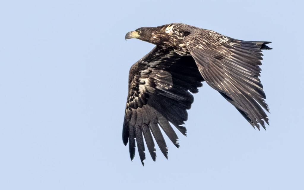 Merikotkia, lähinnä nuoria, näkyy muutama päivittäin