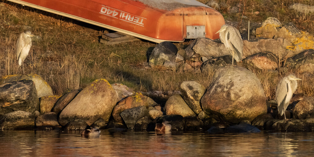 Keskiviikkona 26.11.2025 korkeapaine jatkui, aurinkoista, lämpöä 2-3 astetta ja tuuli oli lännestä 3-5 m/s. Vajaan tunnin staiji aamulla, mutta väreily merellä haittasi ikävästi. Kiersin saaren itäosat. muuten kotinurkilla. Havaintoja tänään olivat mm. 4 harmaahaikaraa, 11 allia, tavi, lapasotka, 2 tukkakoskeloa ja saaressa mm. 2 taivaanvuohta, luhtakana lennähti itärannan ruovikon reunalla, isolepinkäinen ja kiuru edelleen. Aika hiljaista, mutta loppuviikon sotaharjoitus tuonee vipinää ja ääntä saareen. Pelästyvätköhän loputkin linnut pois…