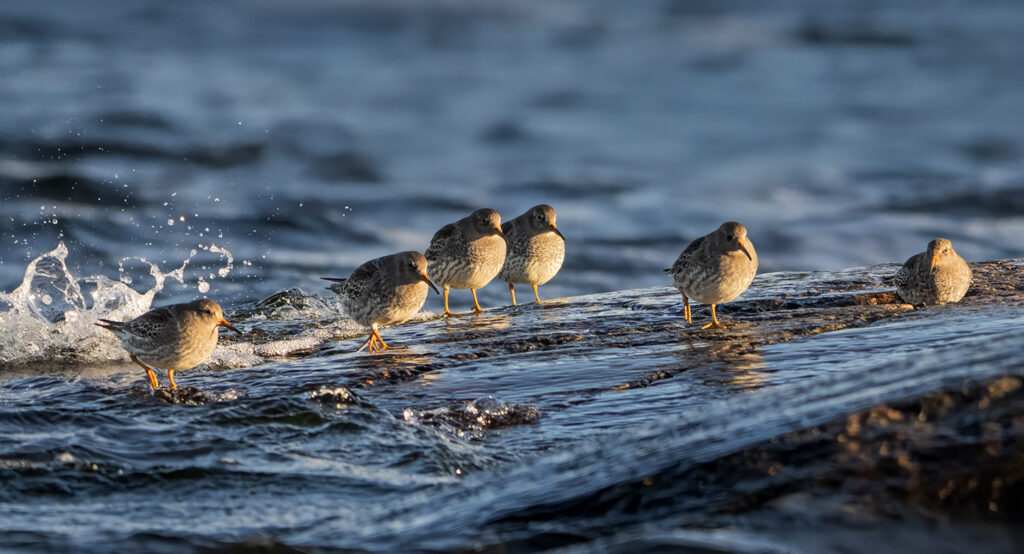 Lauantaina 22.11.2025 oli vaihteeksi puolipilvistä, lämpöä yli 6 astetta, mutta voimistuvaa puuskaista lounaistuulta – aamulla 6 ja illalla jo 15 m/s. Illalla taas myös vesisadetta. Staijia aamulla pari tuntia majakalla ja kierrettiin saari Kesnäsiä lukuun ottamatta. Merellä nähtiin mm. 62 allia, pilkkasiipi, 2 tukkakoskeloa, riskilä, tavi ja Fladanilla lapasotka. Merisirrejä oli eteläpuolen luodoilla 5 ja itärannan pikkuluodoille saapui päivällä 24 yksilön parvi – eka kertaa tänä syksynä kuvausetäisyydellä tuulen ”pakottamina”. Lisäksi nähtiin mm. 2 harmaahaikaraa, 1kv kanahaukka, 1-2 varpushaukkaa, taivaanvuohi, 5 peukaloista, 2 niittykirvistä ja kiuru.