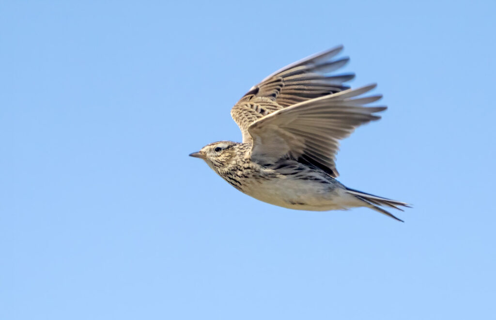 Kiuruja on pieni parvi itäniityllä, usein jokunen jää pesimäänkin (kuva: Outi Sarjakoski)