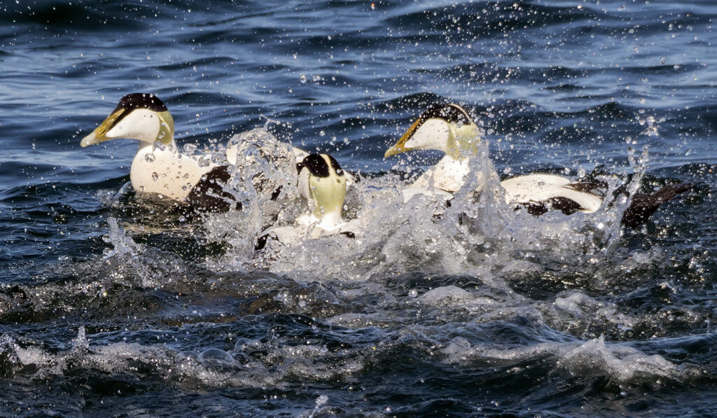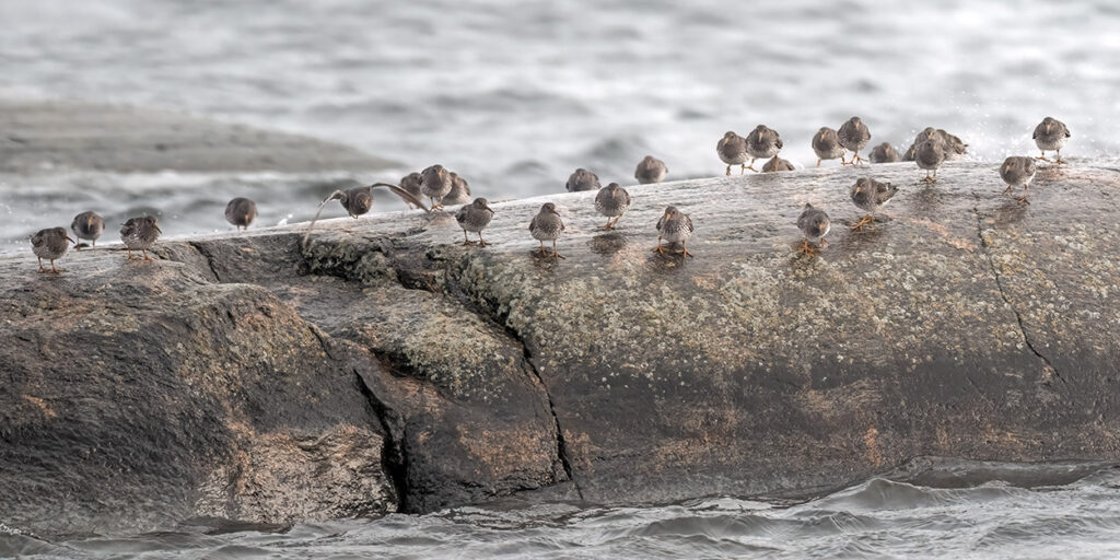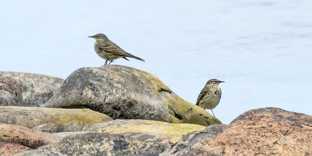 Merisirrejä nähtiin enimmillään 280 yksilöä 15.3. ja kevään viimeiset havaittiin niinkin myöhään kuin 3.6. Mustaleppälintuja nähtiin 25.3.-17.6. yhteensä ainakin 28 yksilöä ja etelänkiisloja 27.3.-16.6. yhteensä 18 kertaa (a’1-3 yksilöä). Ruokkimuuton huippu oli 7.4., jolloin laskettiin 974 yksilöä – TLYn alueen uusi ennätys ja koko kevään ruokkimuuton summa Utössä oli 2911 yksilöä. Utössä harvinaisia vesilintuja olivat punasotka 4.4. ja 22-23.5. sekä nokikana 28.4.-6.5.